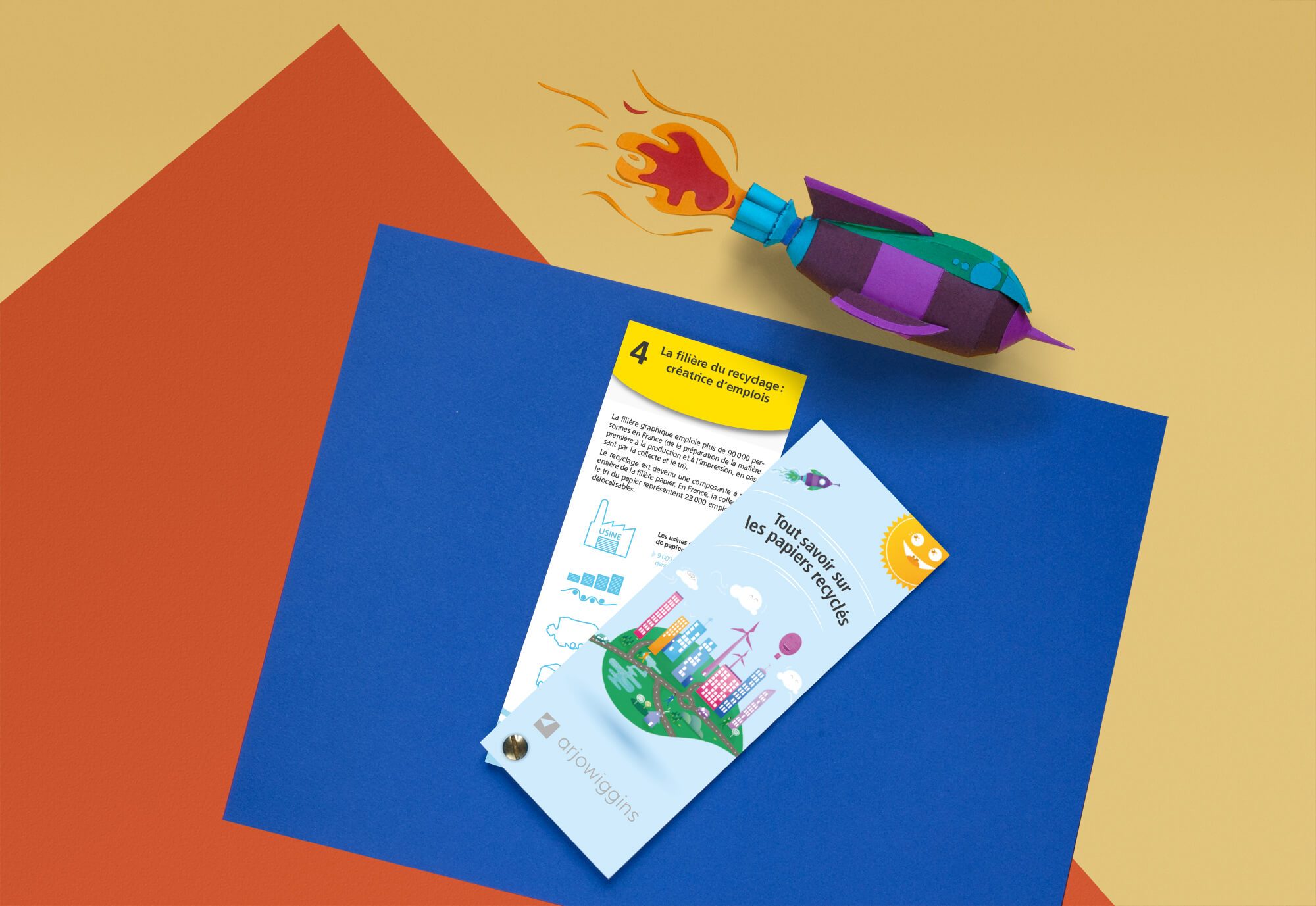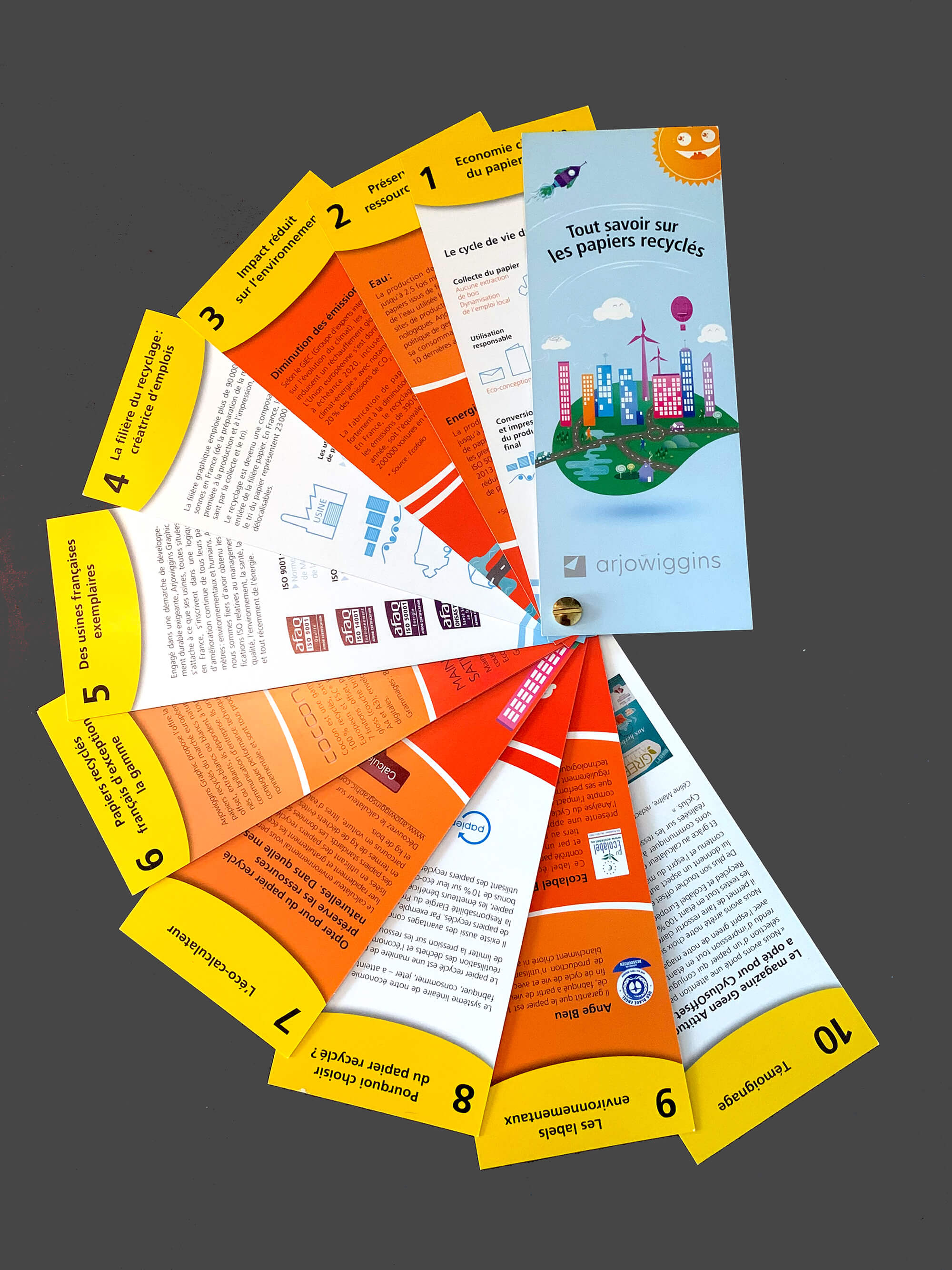 Création et impression d’un outil pédagogique et ludique sous la forme d’un nuancier à destination des agences et des annonceurs. Outil permettant de présenter la gamme de papiers recyclés Arjowiggins.